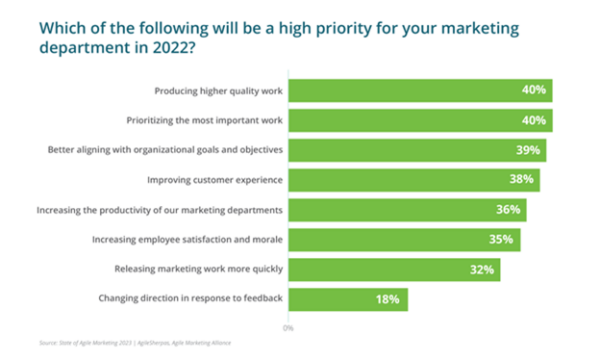 In the 2023 State of Agile Marketing Report (gated), the most popular priorities for marketers this year include: