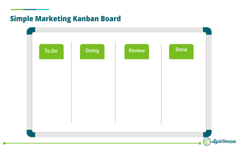 At their simplest, Kanban boards encompass four columns – to do, doing, review, and done – with white space below them to add items.