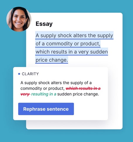 In this example, Grammarly suggests a clarity fix – changing “which results in a very sudden price change” to “resulting in a sudden price change.”