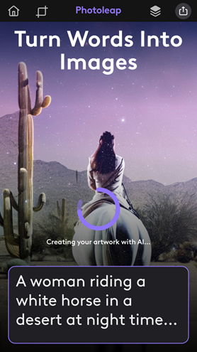 Photoleap lets you create visual content on the fly. To experiment with the feature, click “Generate AI Image” and enter your text (for example, the name of your article).