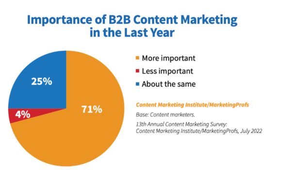 All that combines to elevate the importance of content marketing once again. (Seventy-one percent of marketers say B2B content marketing has risen in importance since last year.) At the same time, spending on paid content distribution channels declined, and brands look to organic and less expensive ways like SEO to inform and ensure their content performs