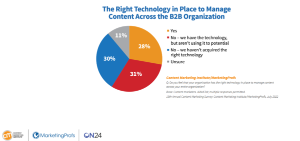 Unfortunately, 61% of marketers say their organization hasn’t acquired the right technology or isn’t using the technology they have to its potential.