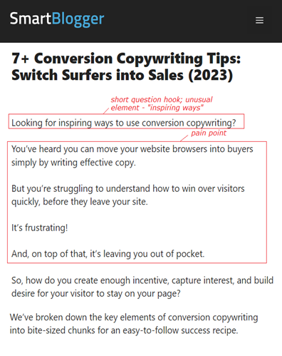 The only rule? Say something that wants yay the audience—something unusual and unexpected. Whether you use a question or a statement, make it sound odd enough for readers to crave more. To cement the effect, refer to a pain point your readers might have. Communicate awareness of your targets’ problems, and you’ll gain their sympathy.