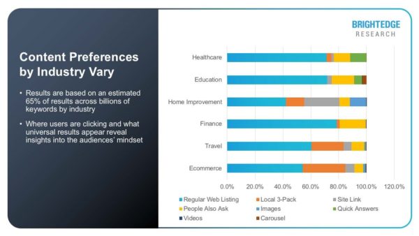 In many cases, as I’ll show below, trends in your industry can learn from trends in healthcare, education, home improvement, finance, travel, and e-commerce. For example, in healthcare and education, there is a segment of searchers who value quick answers, but this type of content doesn’t even show up as a love for home improvement, finance, or e-commerce.