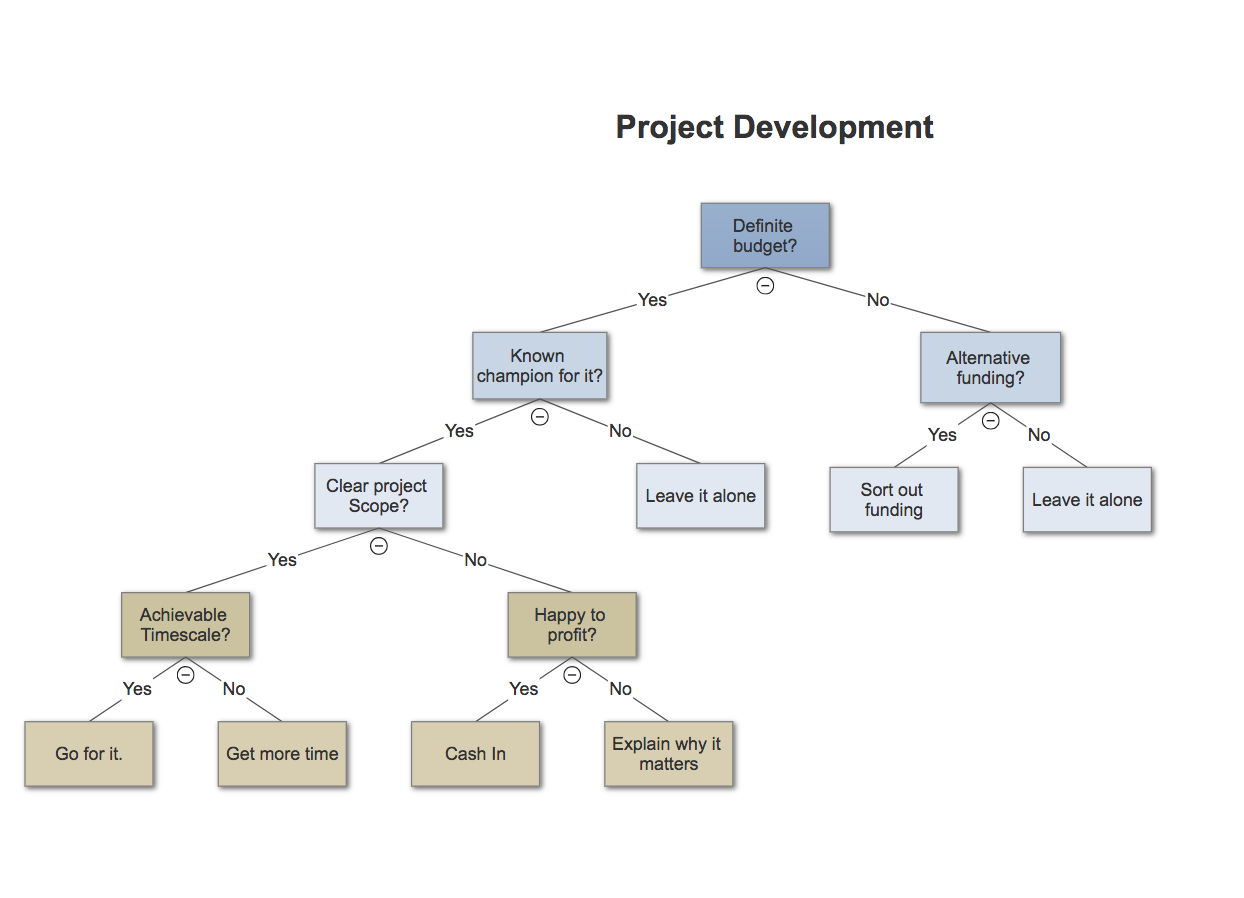 Remember to flesh out each decision in your tree. Each decision should eventually hit an end point, ensuring all outcomes rise to the surface. In other words, there’s no room for surprises.