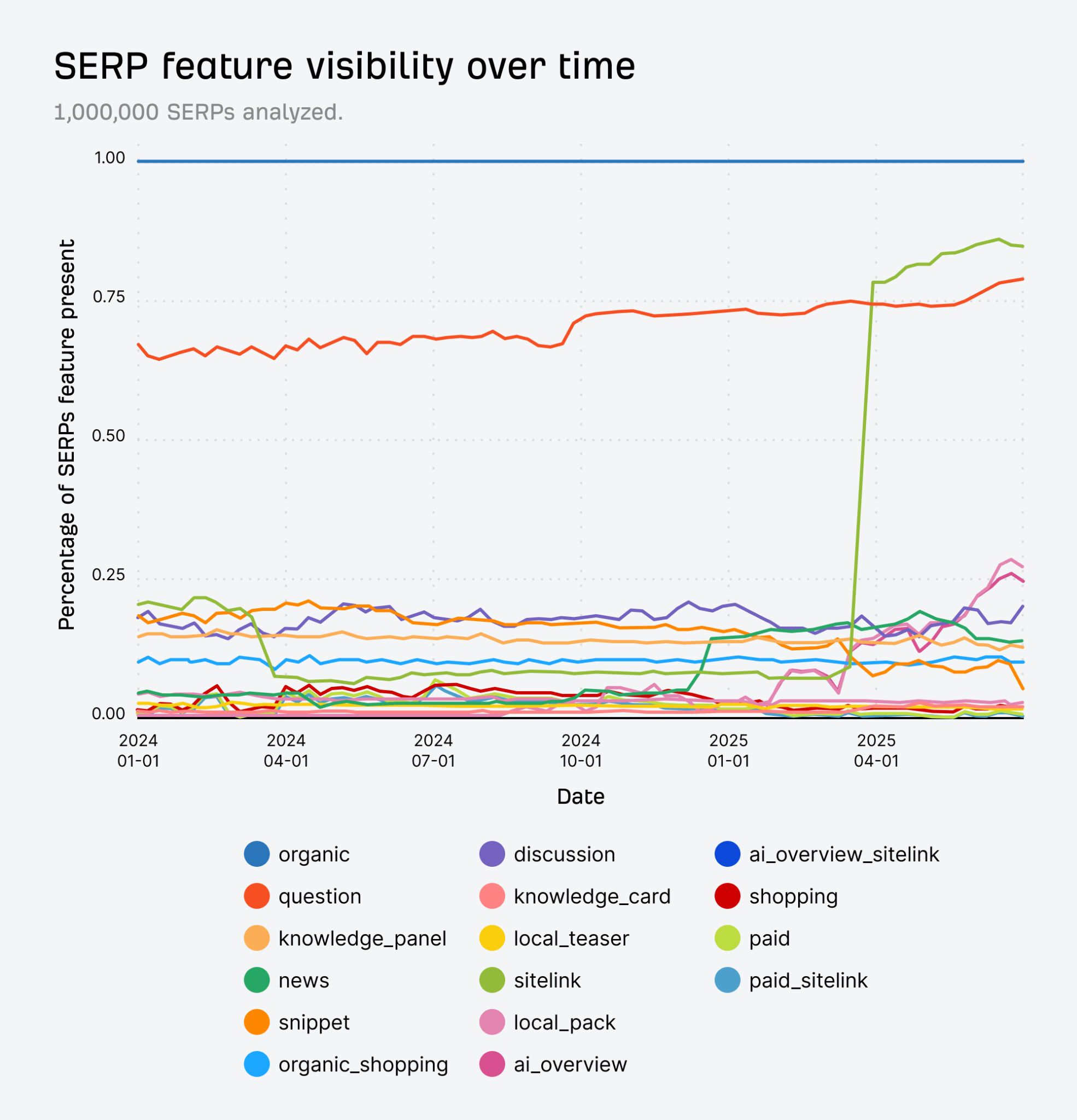This is a two-year time gap (versus one year in the previous study), for the simple reason that December 2024 is after the launch of the AI overviews.