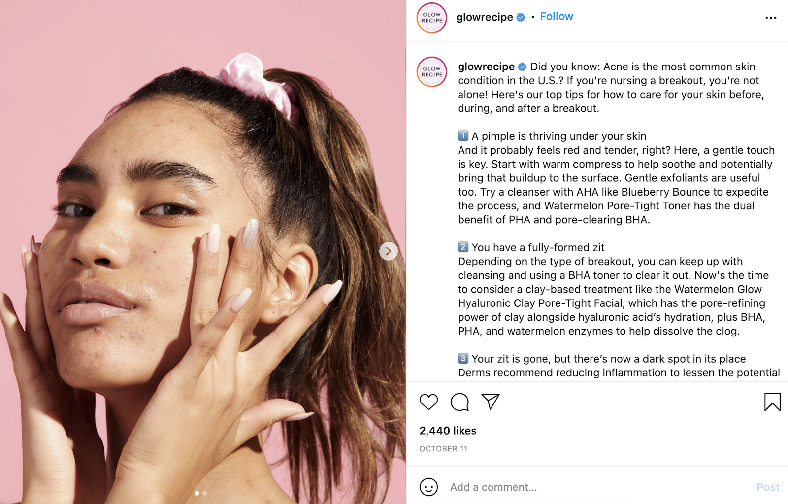 Check out how Glowing Recipea skincare brand, provides value by offering tips for healthy skin while subtly promoting their products: