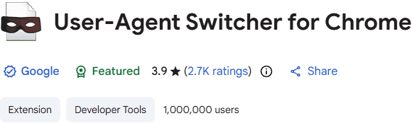Screenshot: Chrome User Agent Switcher