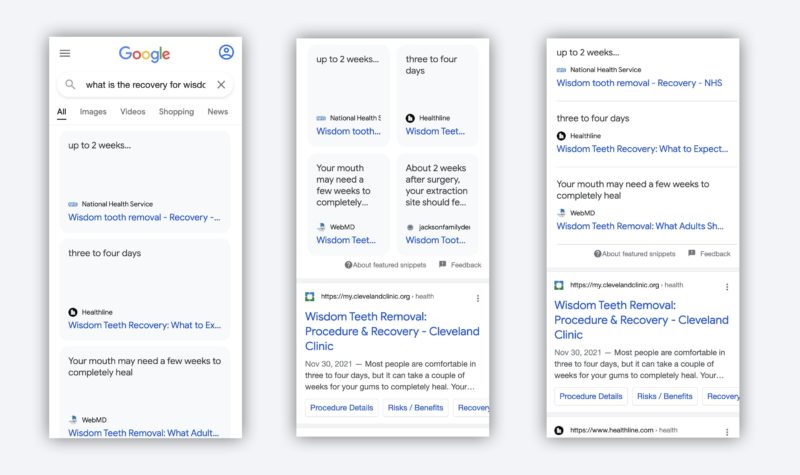 These interface tests are worth keeping an eye on because the featured snippet position is one that is generally sought after to achieve by most SEOs and site owners. Changing the design, showing more than one featured snippet, can all impact your click through rate on that position and ultimately your traffic and conversions driven from Google Search.