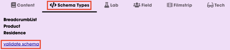 Step 2: Under each result, click the Schema Types tab and then the validate schema link.