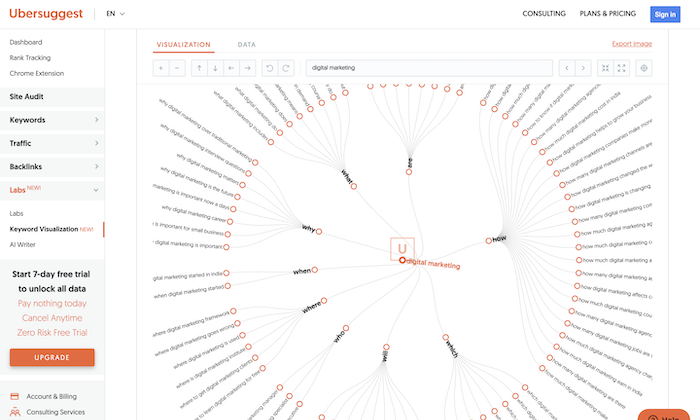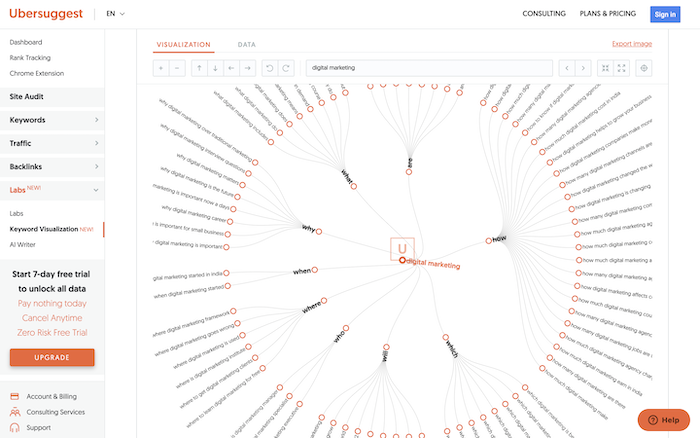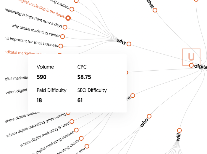 In other words, you’ll get a more detailed list from Ubersuggest as it will pull all the different variations from Google Suggest.