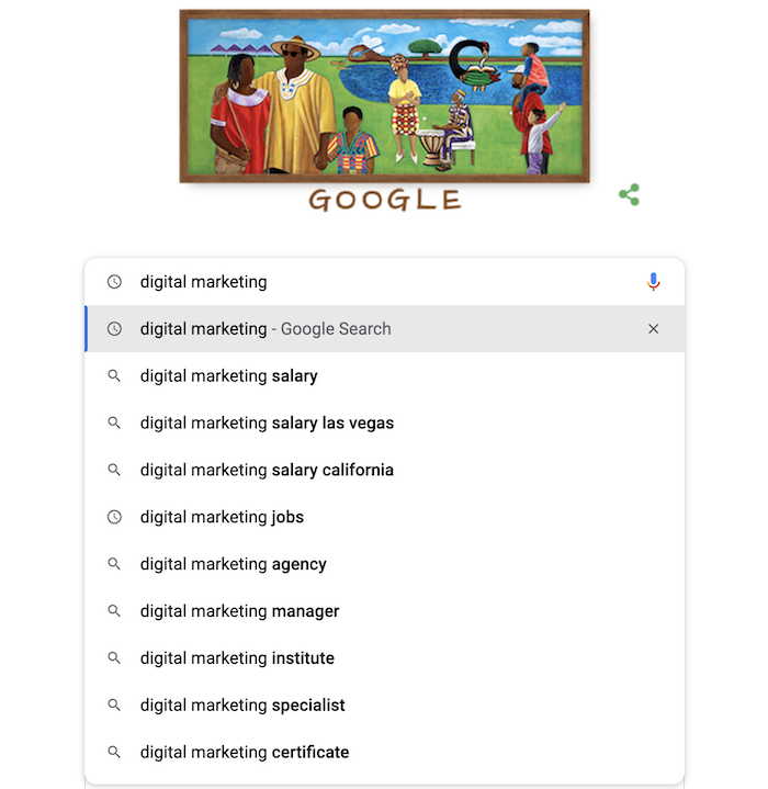 Just look at this… when I type in “digital marketing” it recommends other keywords based on what people are interested in…