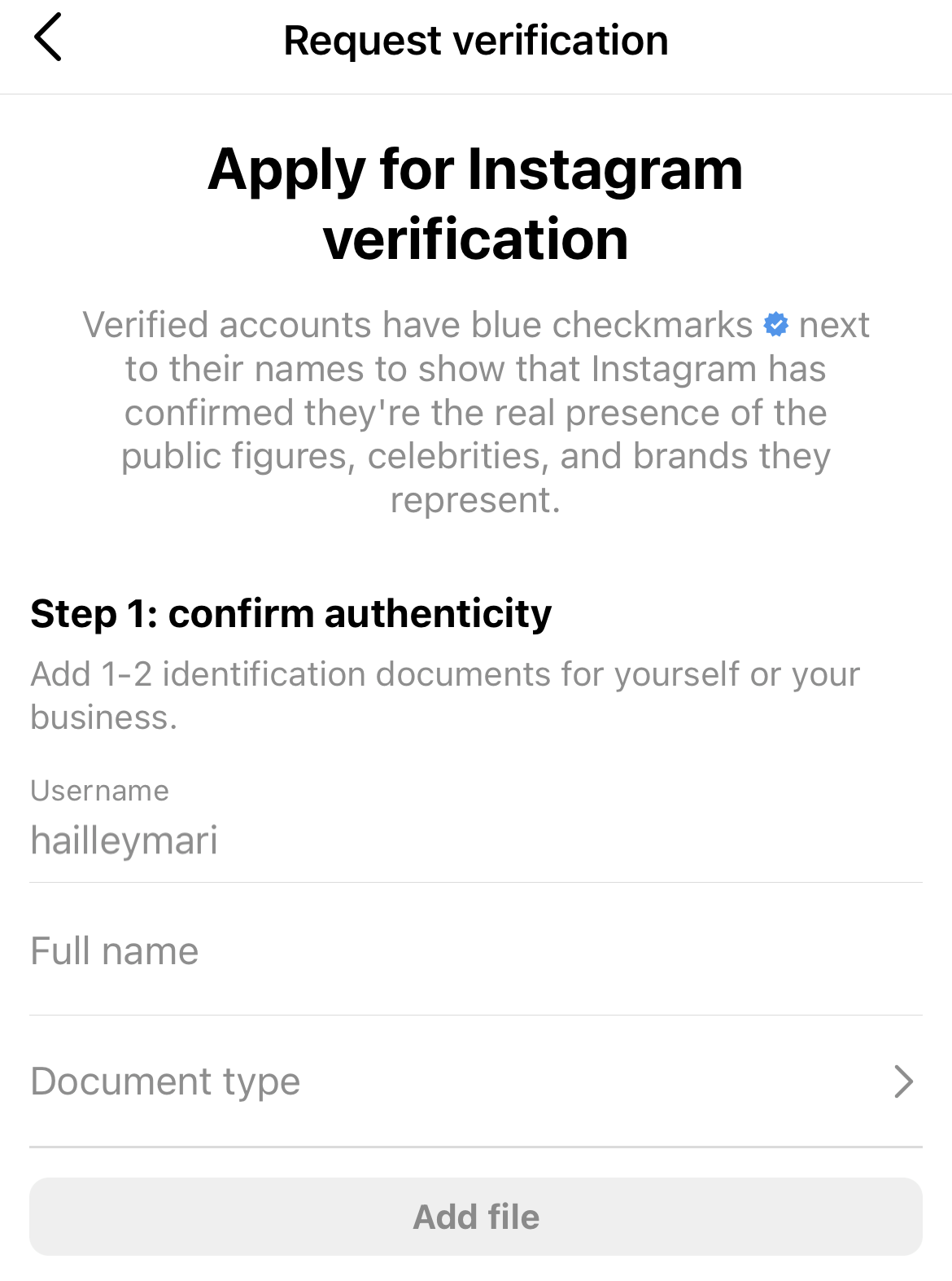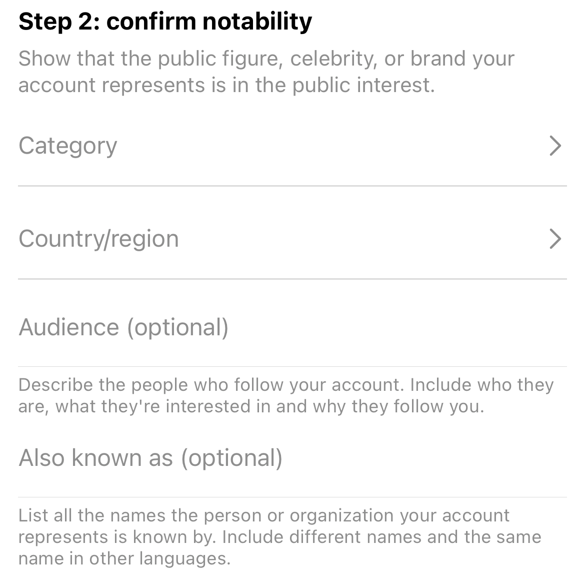 This is where most people run into problems, because you have to prove to Instagram that you are notable, which is easier for some than others. Being notable means you represent “represent a well-known, highly searched-for person” according to Instagram.