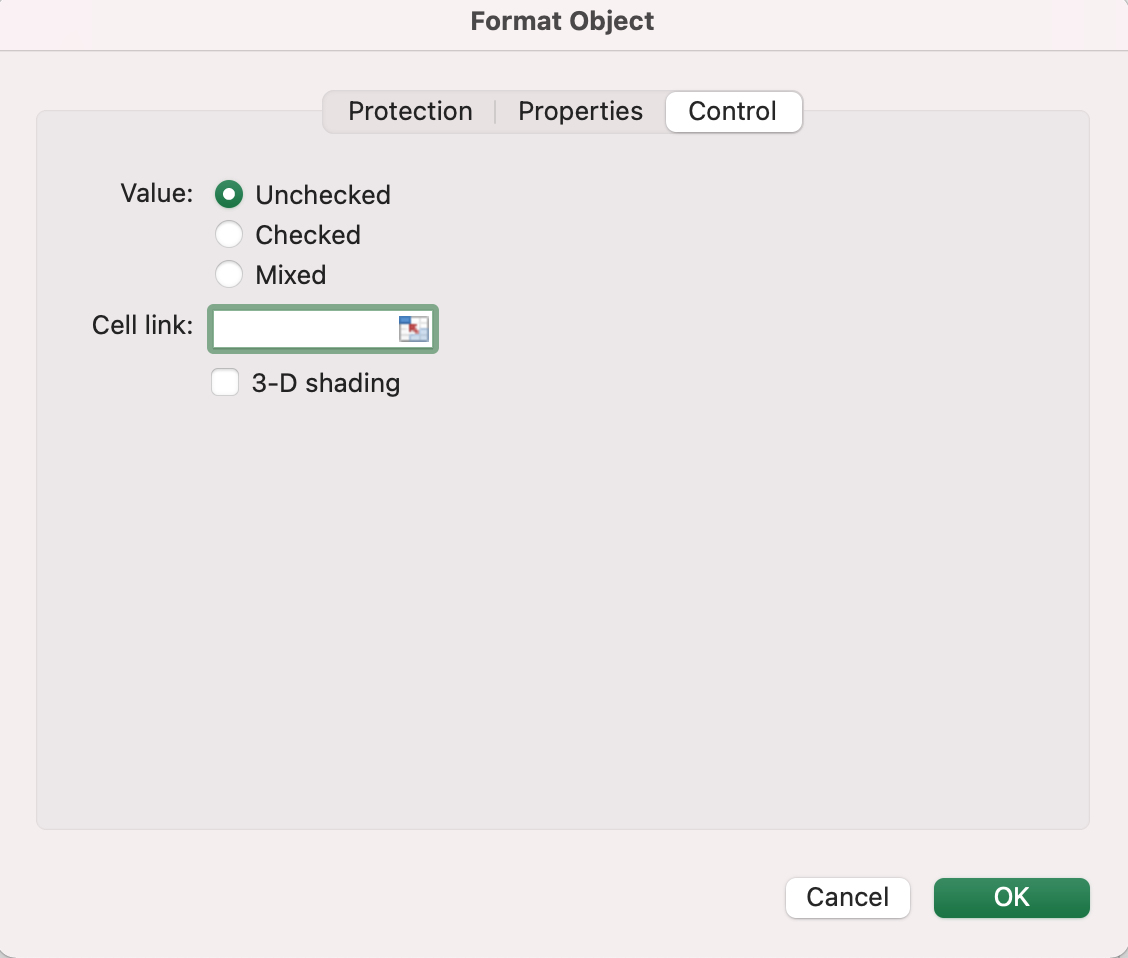 As for the cell link, this contains the checkbox status (true or false) of the cell it’s referencing.