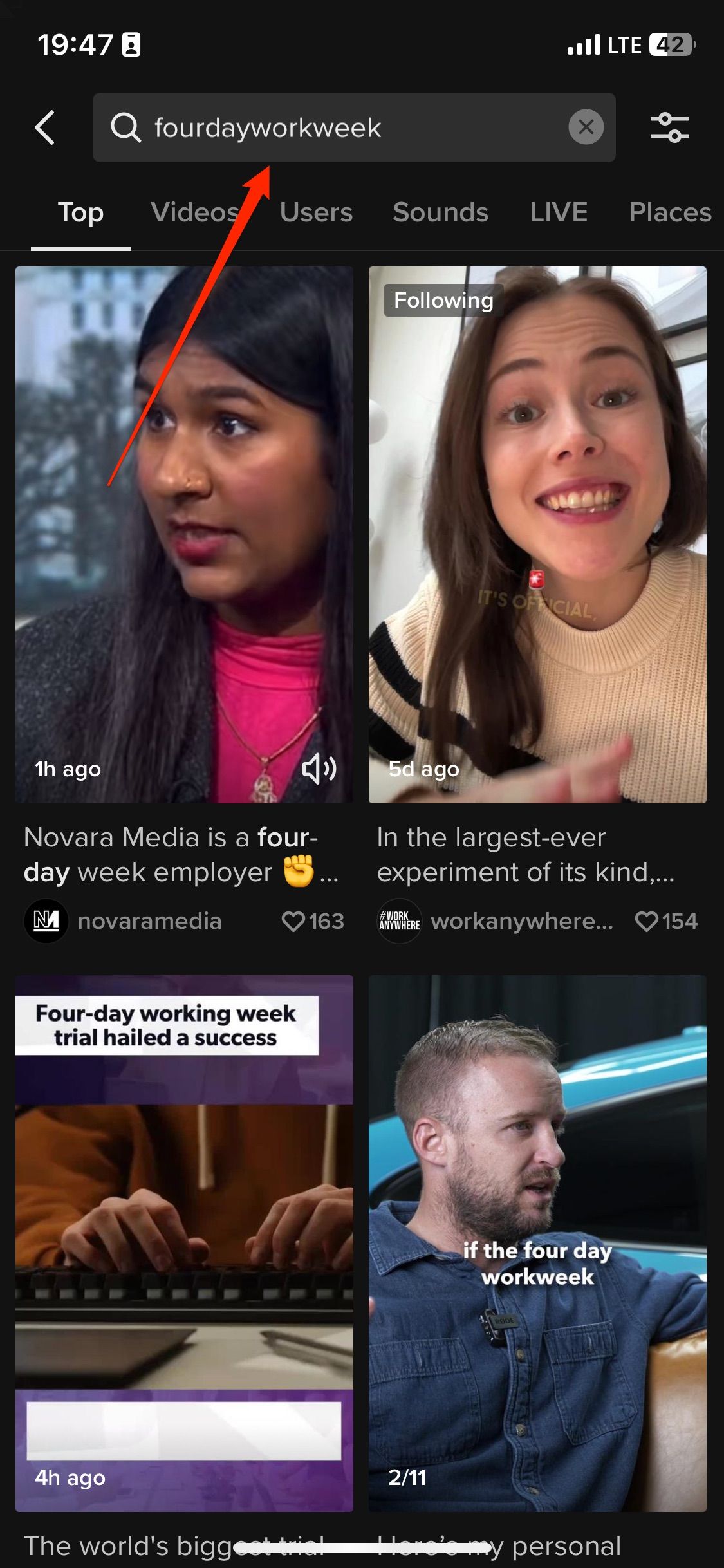 - Check what content is being created under that hashtag. Keep a mental note of how many likes, comments, and views the videos have, as well as which creators appear repeatedly under that hashtag. This can give you an idea of its popularity.