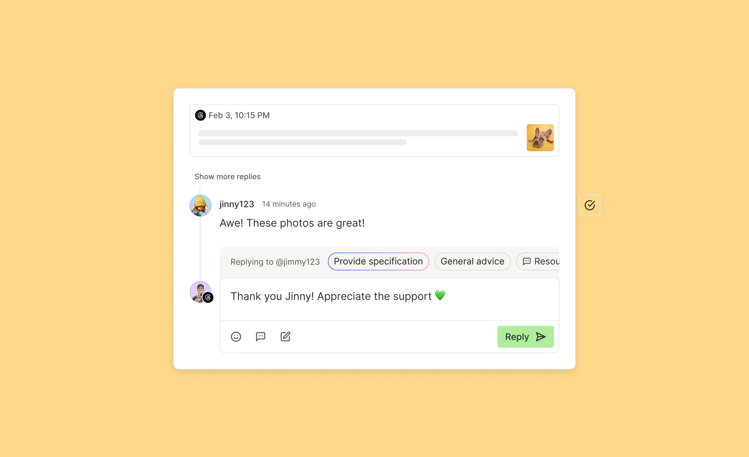 Manage your community from a unified inbox. Respond to comments, keep conversations going, and build relationships in a focused workspace.
