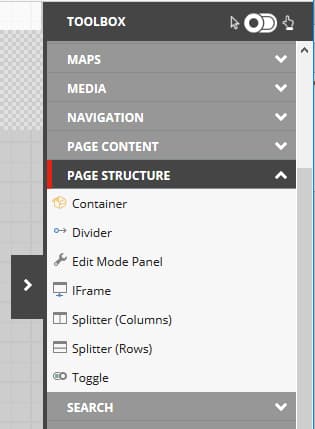 What sets Sitecore apart from the other CMS platforms on our list is the ability to reuse content and quickly work on a site across teams using Sitecore Experience Accelerator (SXA). This can speed up the process for developers. Here is what the toolbox looks like.