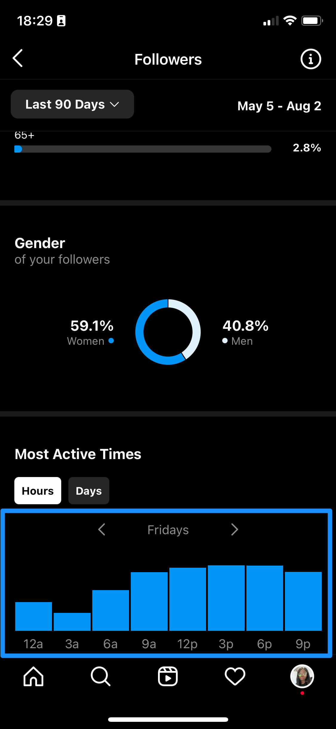 Sharing photos and reels at optimal times is a great way to get around this hurdle – if your content immediately makes it to your audience’s feed while they have time to engage with it, it’s more likely to succeed.